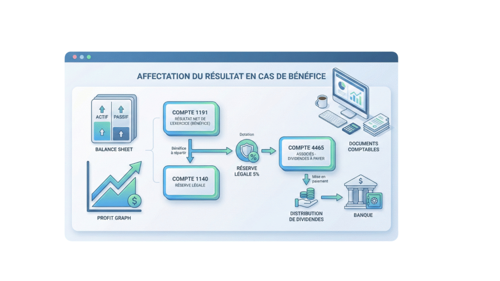 📘 Écritures comptables d’affectation de résultats — Cas de bénéfice (SARL, Maroc)