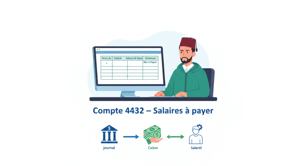 Le compte 4432 – Salaires à payer est un compte clé en comptabilité marocaine. Il permet de gérer correctement le paiement des salaires, que ce soit par banque ou par caisse (espèces). Dans cet article, nous expliquons son fonctionnement, les écritures comptables associées et son lien direct avec la paie et la CNSS.