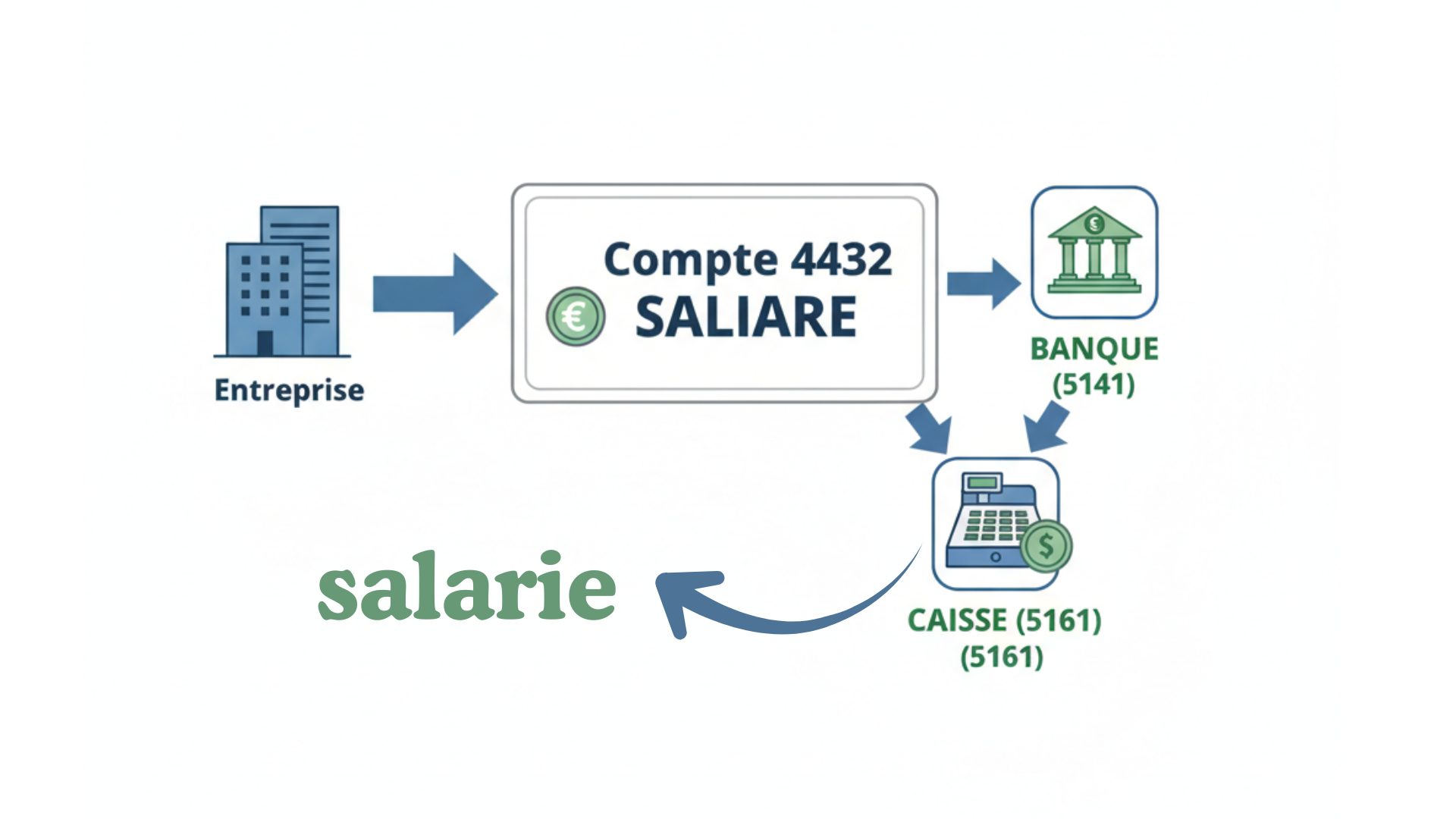 | 51410000 | Banque – Virement salaire | Salaire net |